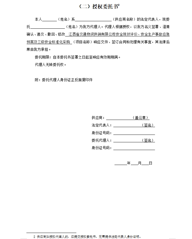 本项目江西交通物资供销有限公司关于安全现状评价、安全生产事故应急预案及三级安全标准化采购(以下简称本项目)已获批,资金已落实,项目业主和采购人为江西交通物资供销有限公司。综合市场供应及自身需求,现邀请安全服务经销商参与本项目的询价报价。